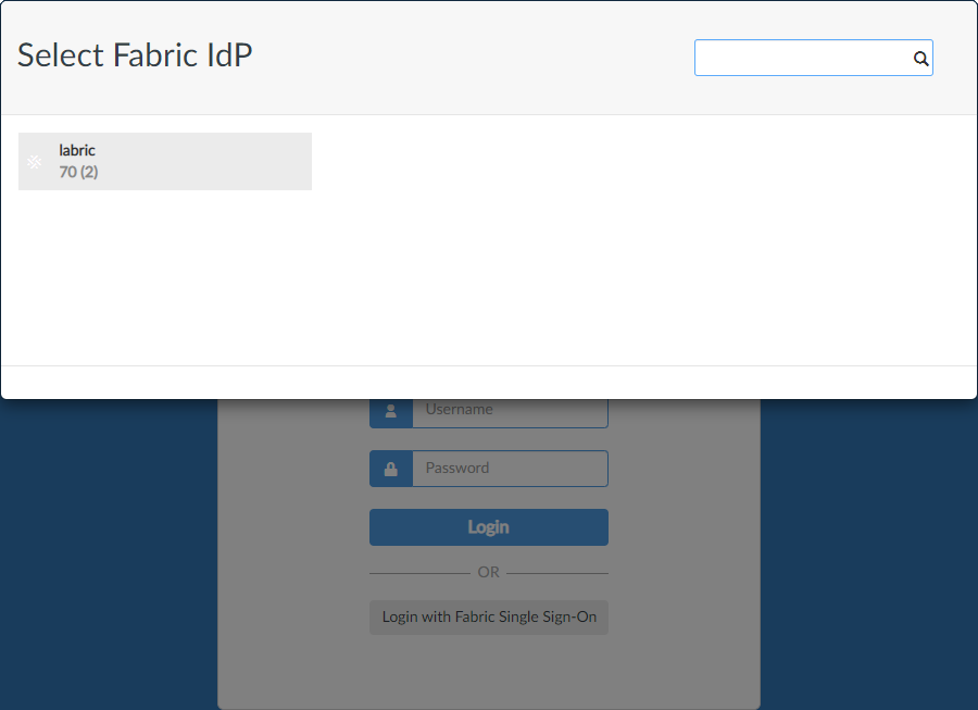 Click Login with Fabric Single Sign-On. A dialog appears to select a Fabric IdP.