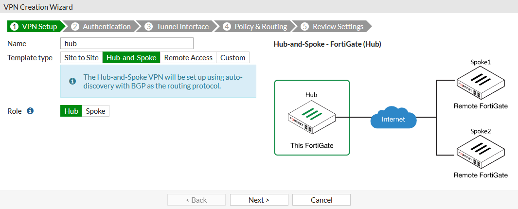 IPsec VPN wizard hub-and-spoke ADVPN support