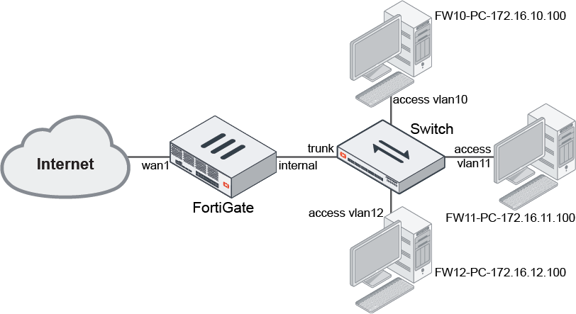 config system interface edit "Internal_VRF10" set vdom "root" set vrf 10 set ip 172.16.10.1 255.255.255.0 set allowaccess ping https ssh http set alias "Internal_VRF10" set role lan set interface "internal" set vlanid 10 next edit "Internal_VRF11" set vdom "root" set vrf 11 set ip 172.16.11.1 255.255.255.0 set allowaccess ping https ssh http set alias "Internal_VRF11" set role lan set interface "internal" set vlanid 11 next edit "Internal_VRF12" set vdom "root" set vrf 12 set ip 172.16.12.1 255.255.255.0 set allowaccess ping https ssh http set alias "Internal_VRF12" set role lan set interface "internal" set vlanid 12 next edit "wan1_VRF10" set vdom "root" set vrf 10 set ip 202.100.10.1 255.255.255.0 set allowaccess ping set alias "wan1_VRF10" set role wan set interface "wan1" set vlanid 10 next edit "wan1_VRF11" set vdom "root" set vrf 11 set ip 202.100.11.1 255.255.255.0 set allowaccess ping set alias "wan1_VRF11" set role wan set interface "wan1" set vlanid 11 next edit "wan1_VRF12" set vdom "root" set vrf 12 set ip 202.100.12.1 255.255.255.0 set allowaccess ping set alias "wan1_VRF12" set role wan set interface "wan1" set vlanid 12 next end -