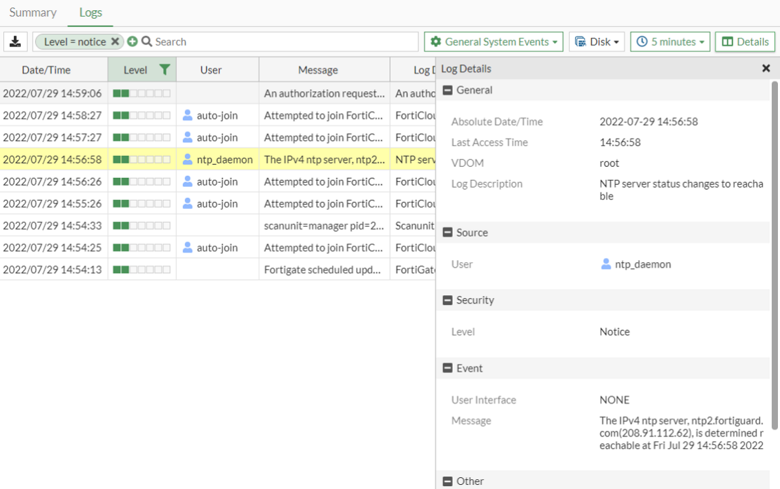 9). subtype-system | eventname-Log rotation requested by FortiCron | level-notice | count-1 |