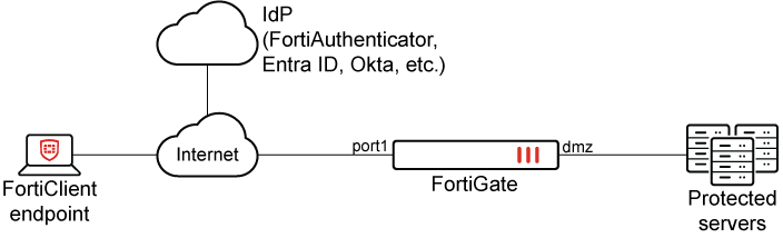 We will now see how to configure IPsec with SAML authentication using different IdPs on FortiGate and FortiClient using the following example: