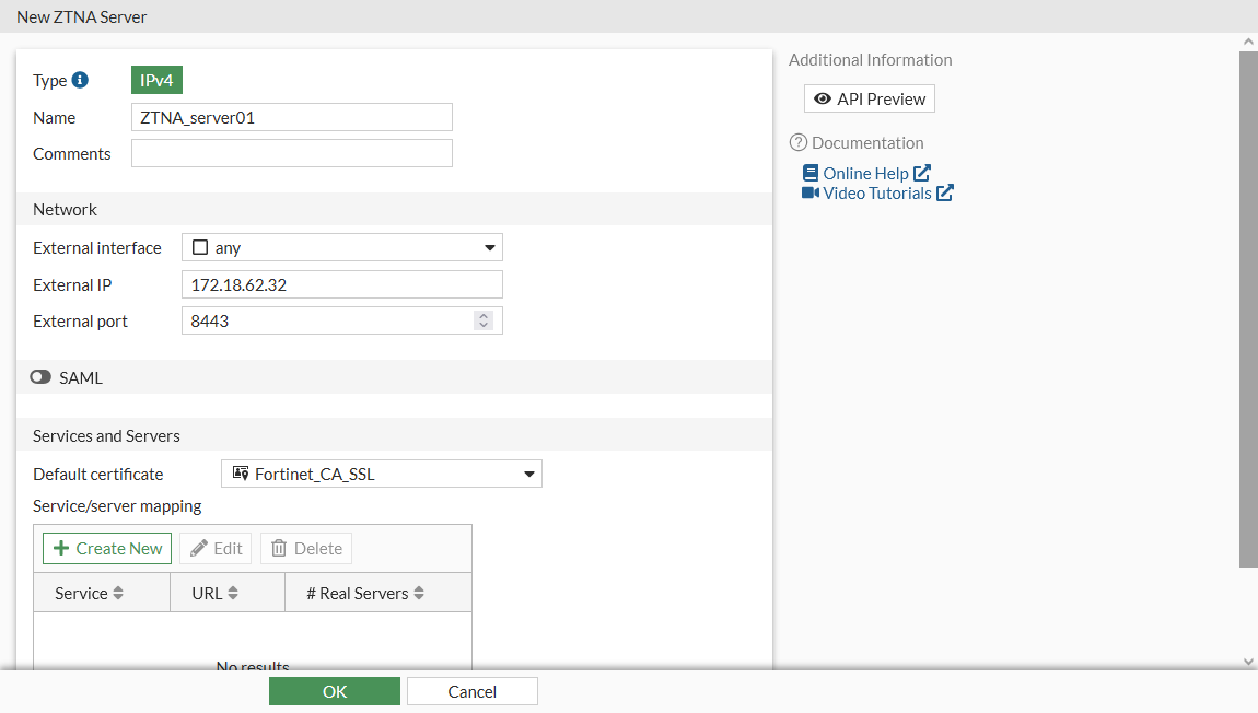 For advanced setup information, see ZTNA proxy access with SAML authentication example and ZTNA access proxy with SAML and MFA using FortiAuthenticator example.