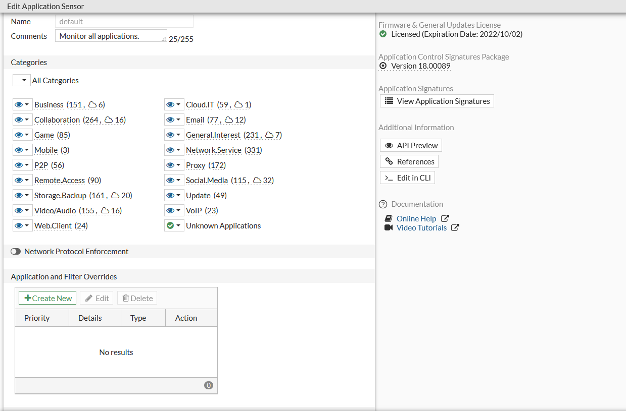 2. Select a relative Application Control profile used by the firewall policy and click Edit.