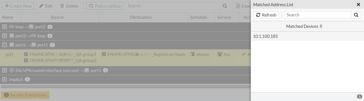 5. Hover over the address in the policy, then in the tooltip, click View Matched Addresses.