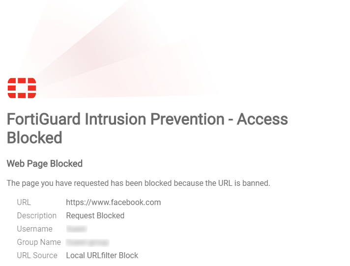 Verify the URL filter results by going to a blocked website. For example, when you go to the Facebook website, the replacement message appears: