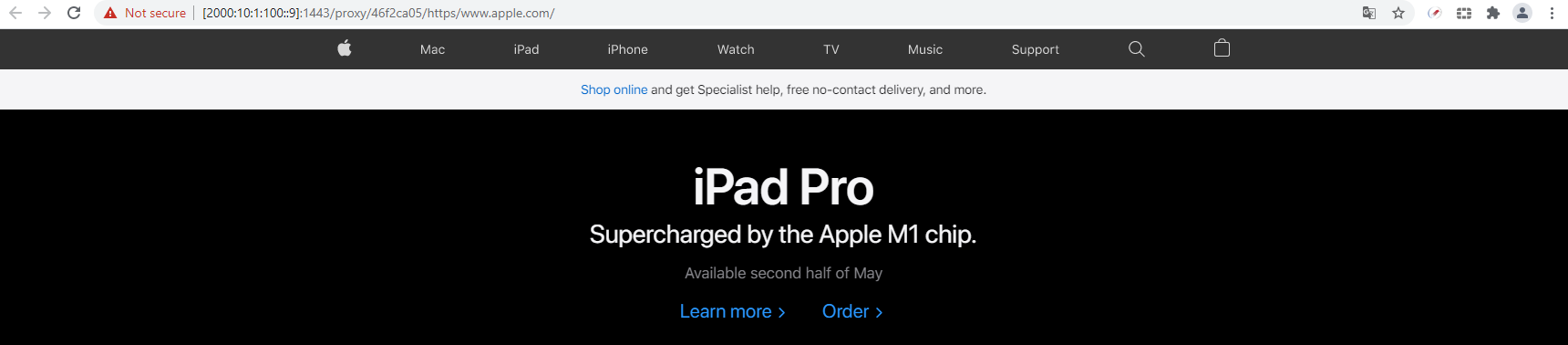 Click the apple bookmark. The apple page will open over IPv4.