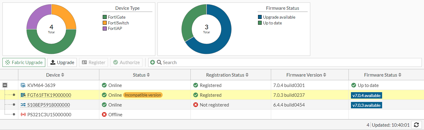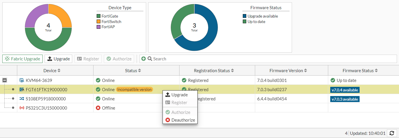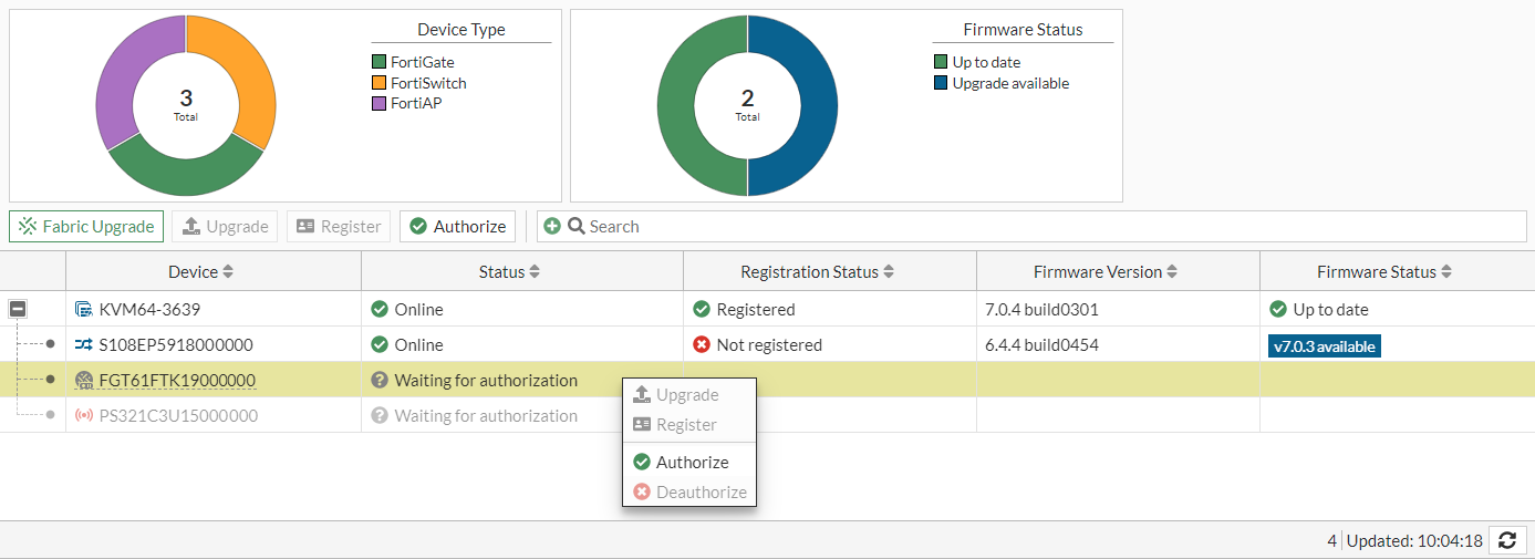 To deauthorize a Security Fabric device from the Fabric Management page: