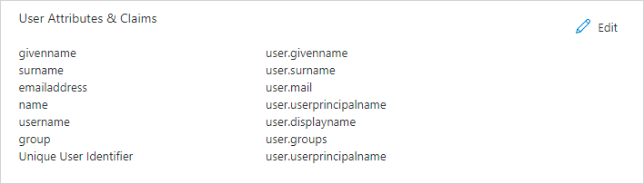 In Azure, edit the User Attributes & Claims section. The attributes are returned in the SAML assertion, which the FortiGate uses to verify the user and group. Configuring group matching is optional.