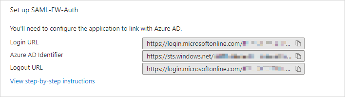 In the Set up <application name> section, copy the URLs from Azure to the FortiGate in the IdP Details section: