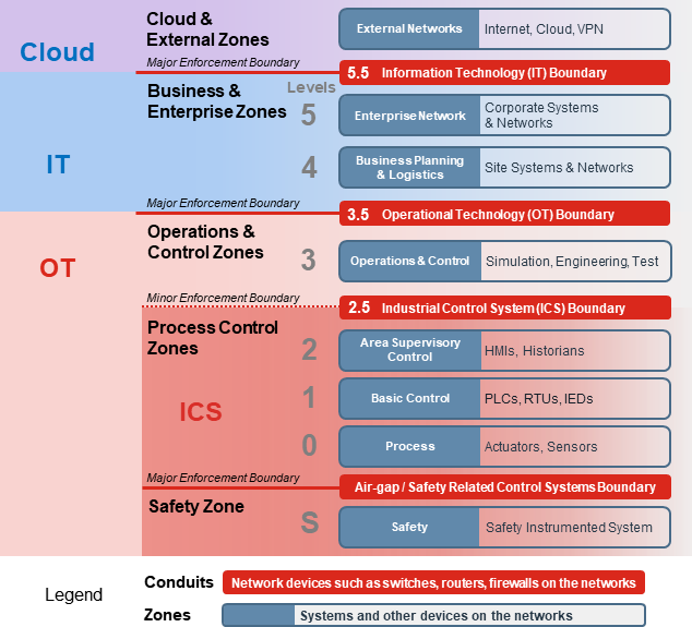 The following diagram lists the Purdue Levels based on OT network topologies: