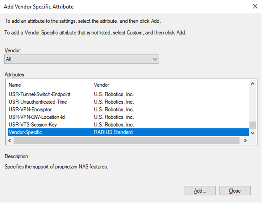 On the Configure Authentication Methods page, click Add and add the EAP type Microsoft: Smart Care or other certificate.