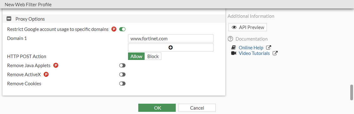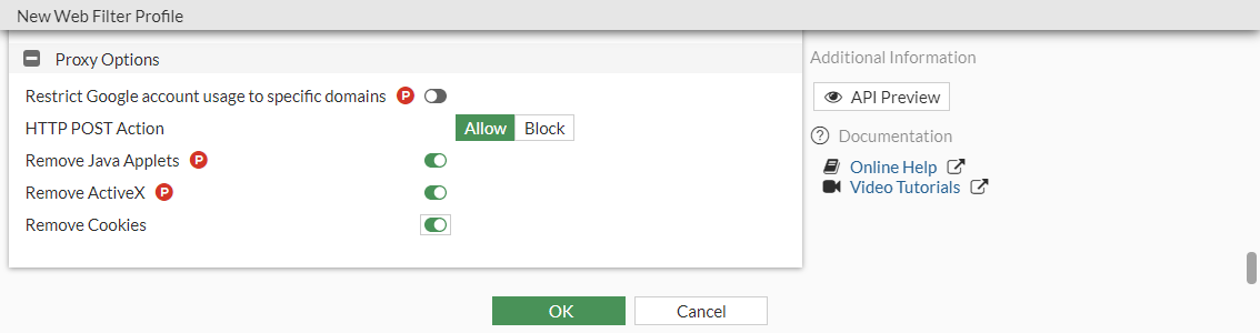- In the Proxy Options section, for HTTP POST Action, select Allow or Block.