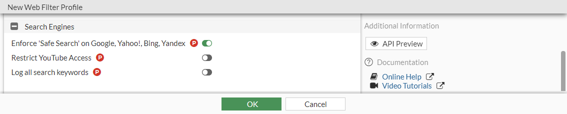 - Go to Security Profiles > Web Filter and click Create New, or edit an existing profile.