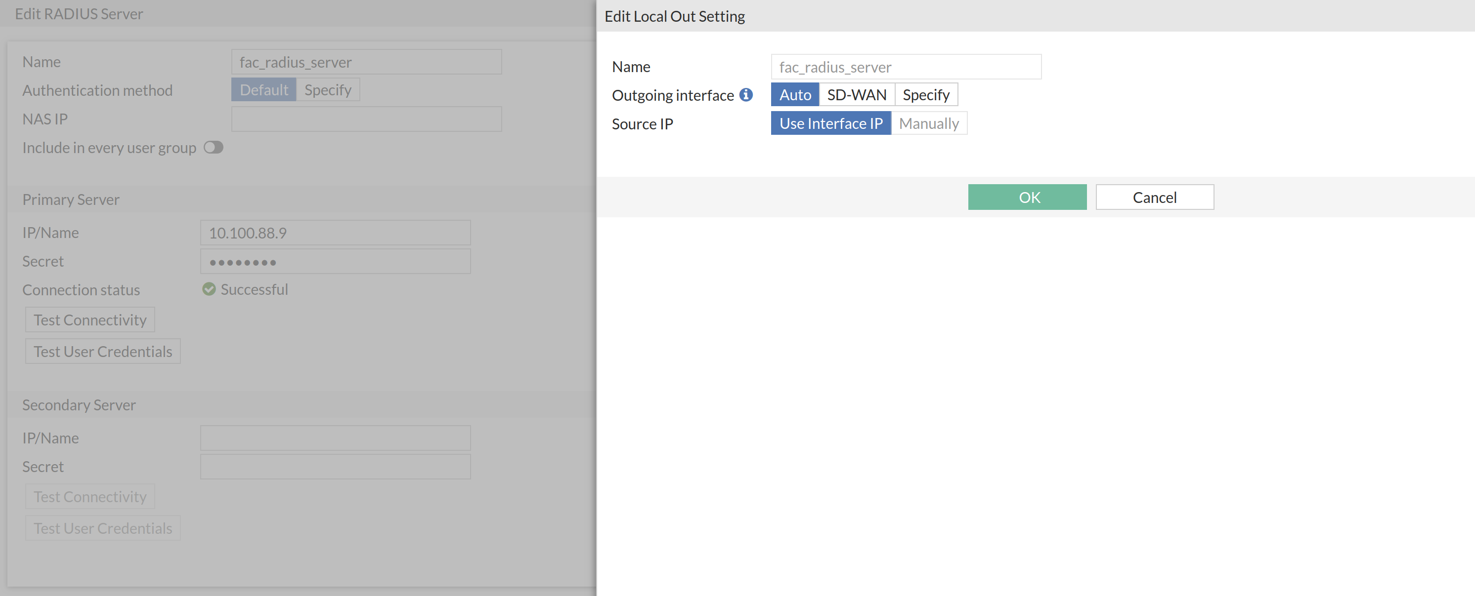 To edit local-out settings from a RADIUS server entry: