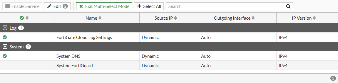 If a service is disabled, it is grayed out. To enable it, select the service and click Enable Service. If a service is enabled, there is a Local Out Setting button in the gutter of that service's edit page to directly configure the local-out settings.