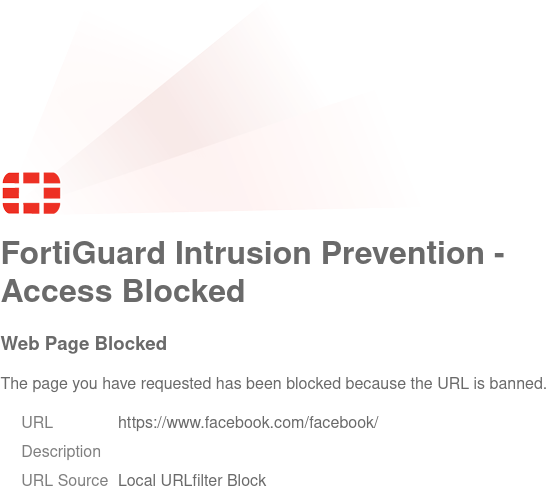 Verify the URL filter results by going to a blocked website. For example, when you go to the Facebook website, the replacement message appears: