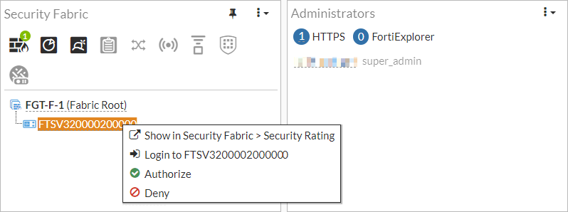 - Go to Dashboard > Status and locate the Security Fabric widget.
