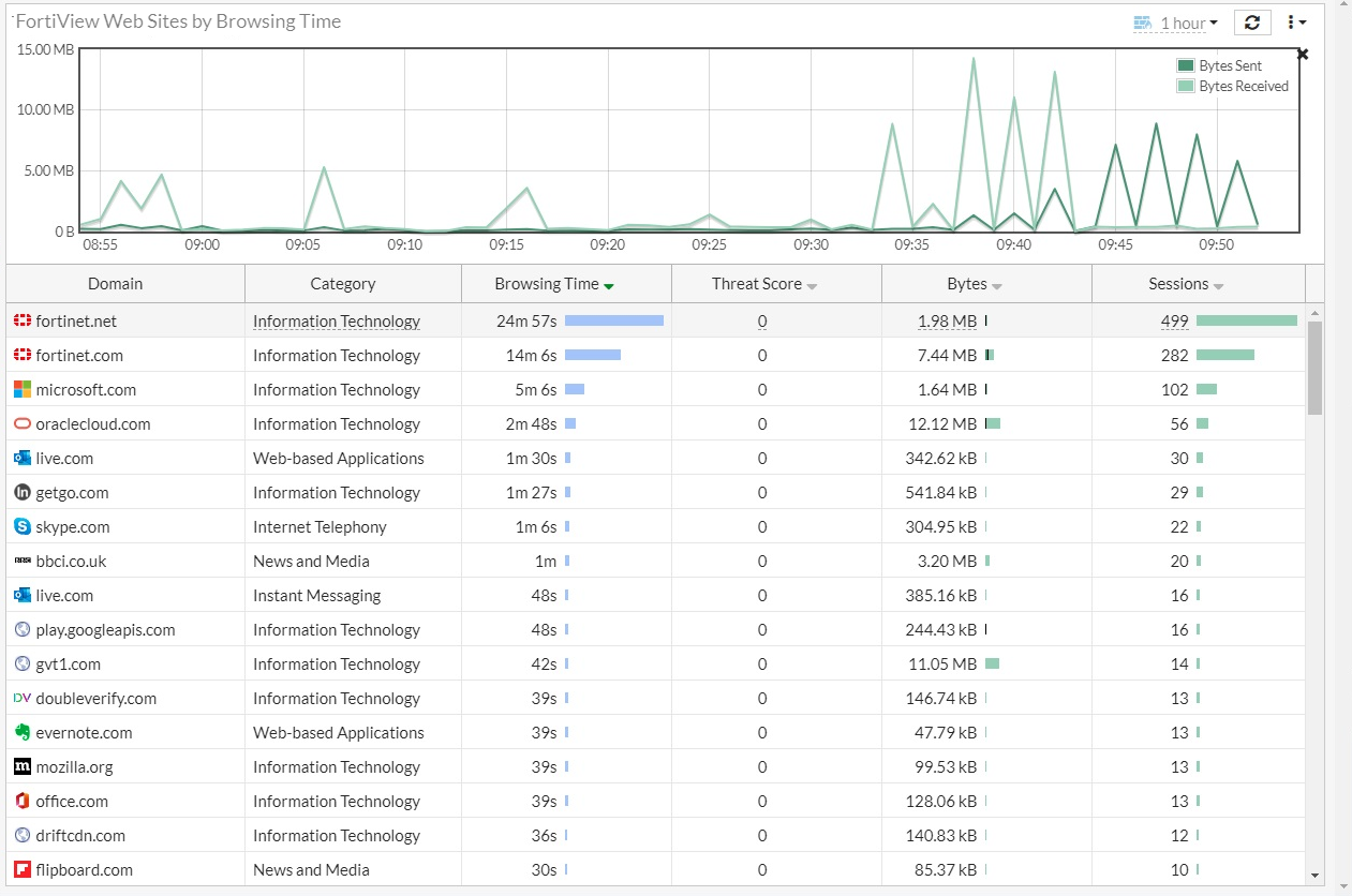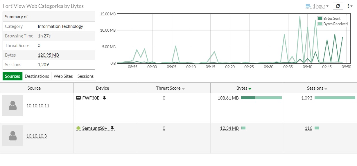 You can use FortiGuard web categories to populate the category fields in various FortiView monitors such as FortiView Web Categories, FortiView Websites or FortiView Sources. To view the categories in a monitor, the web filter profile must be configured to at least monitor for a FortiGuard category based on a web filter and applied to a firewall policy for outbound traffic.