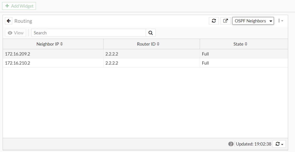 The Static & Dynamic Routing Monitor displays the routing table on the FortiGate, including all static and dynamic routing protocols in IPv4 and IPv6. You can also use this monitor to view policy routes, BGP neighbors and paths, and OSPF neighbors.