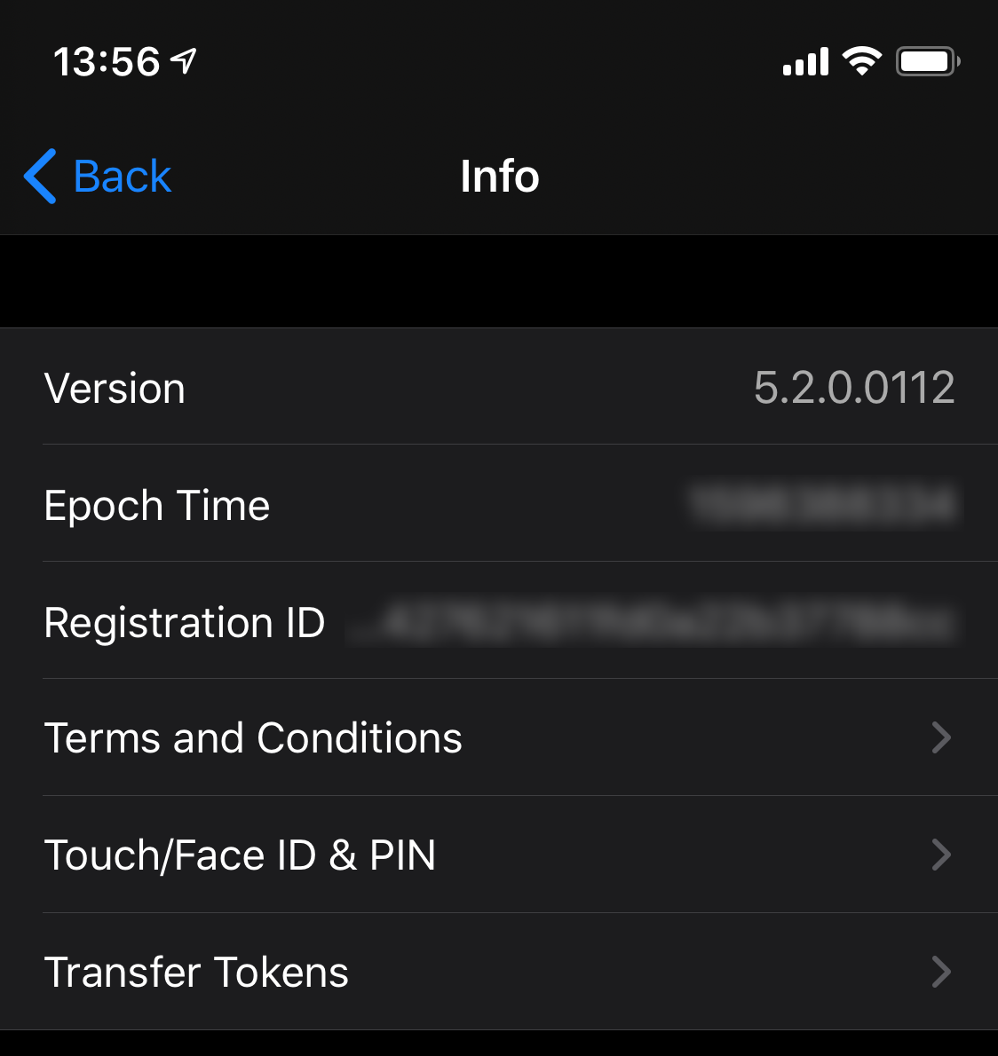 - Open the FortiToken application and tap on Info.