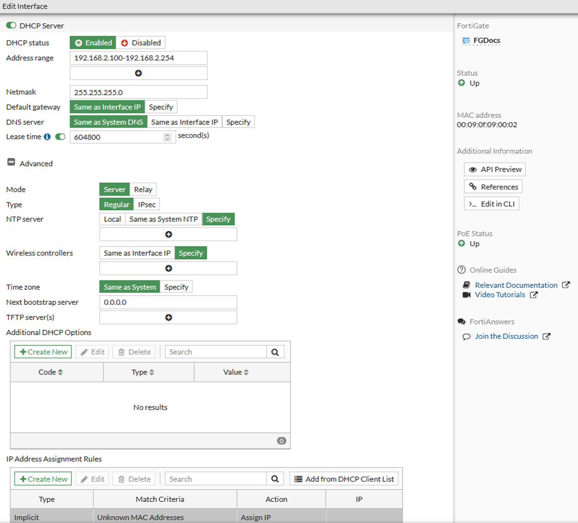 Option 82 (DHCP relay information option) helps protect the FortiGate against attacks such as spoofing (or forging) of IP and MAC addresses, and DHCP IP address starvation.