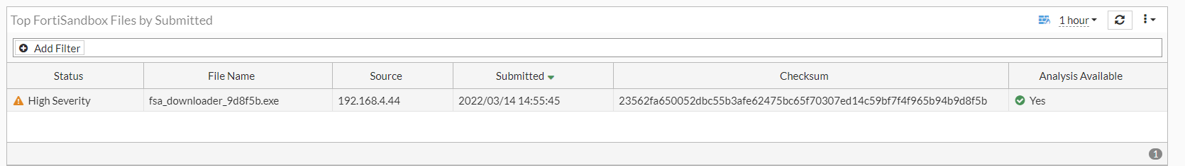 Add the Top FortiSandbox Files FortiView monitor (see Adding FortiView monitors).