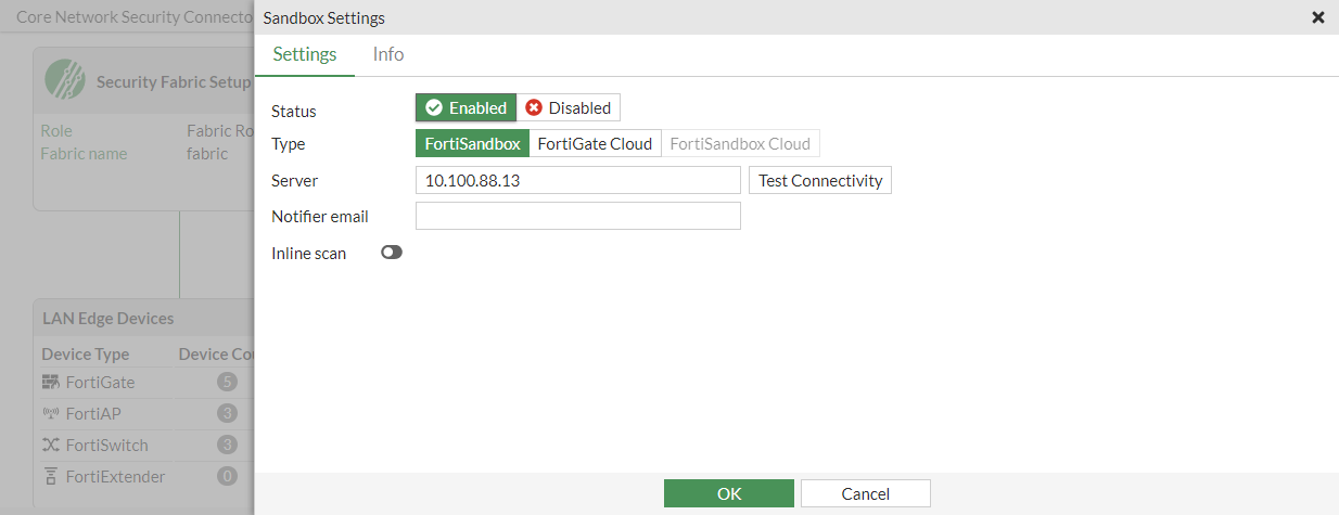 Go to Security Fabric > Fabric Connectors and double-click the Sandbox card.