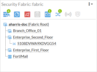 The device tree shows devices that are connected, or could be connected, to you Security Fabric, according to the following color scheme: