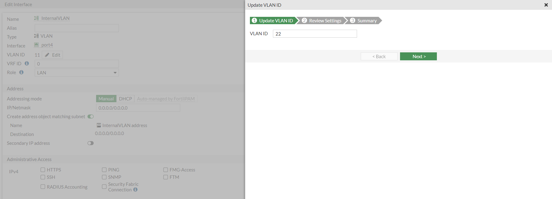 In this example, the VLAN ID of InternalVLAN is changed from 11 to 22.