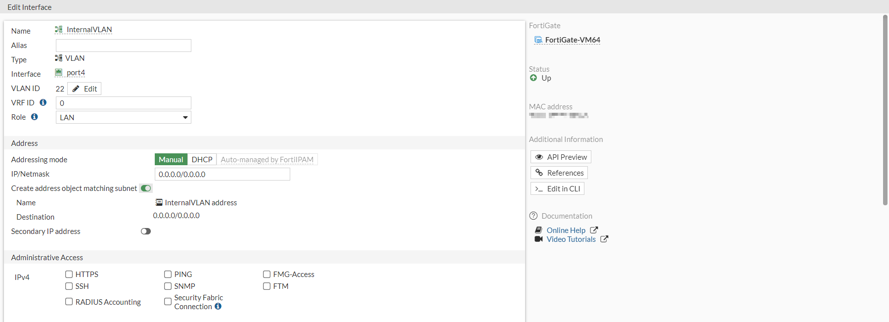 The Integrate Interface option on the Network > Interfaces page helps migrate a physical port into another interface or interface type such as aggregate, software switch, redundant, zone, or SD-WAN zone. The FortiGate will migrate object references either by replacing the existing instance with the new interface, or deleting the existing instance based on the user's choice. Users can also change the VLAN ID of existing VLAN sub-interface or FortiSwitch VLANs.