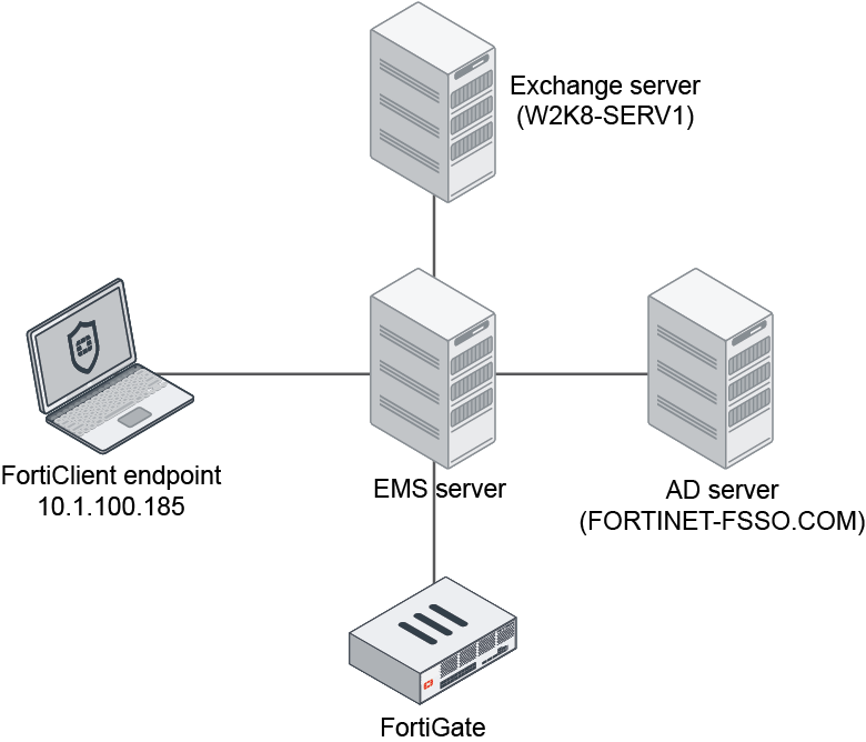 When a FortiClient endpoint is managed by EMS, logged in user and domain information is shared with FortiOS through the EMS connector. This information can be joined with the Exchange connector to produce more complete user information in the user store.
