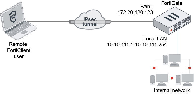 This is a sample configuration of dialup IPsec VPN with FortiClient as the dialup client.