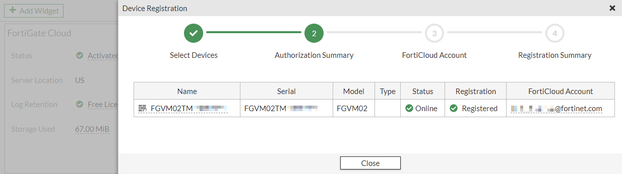 Refresh the page. The FortiGate's status is now Online.