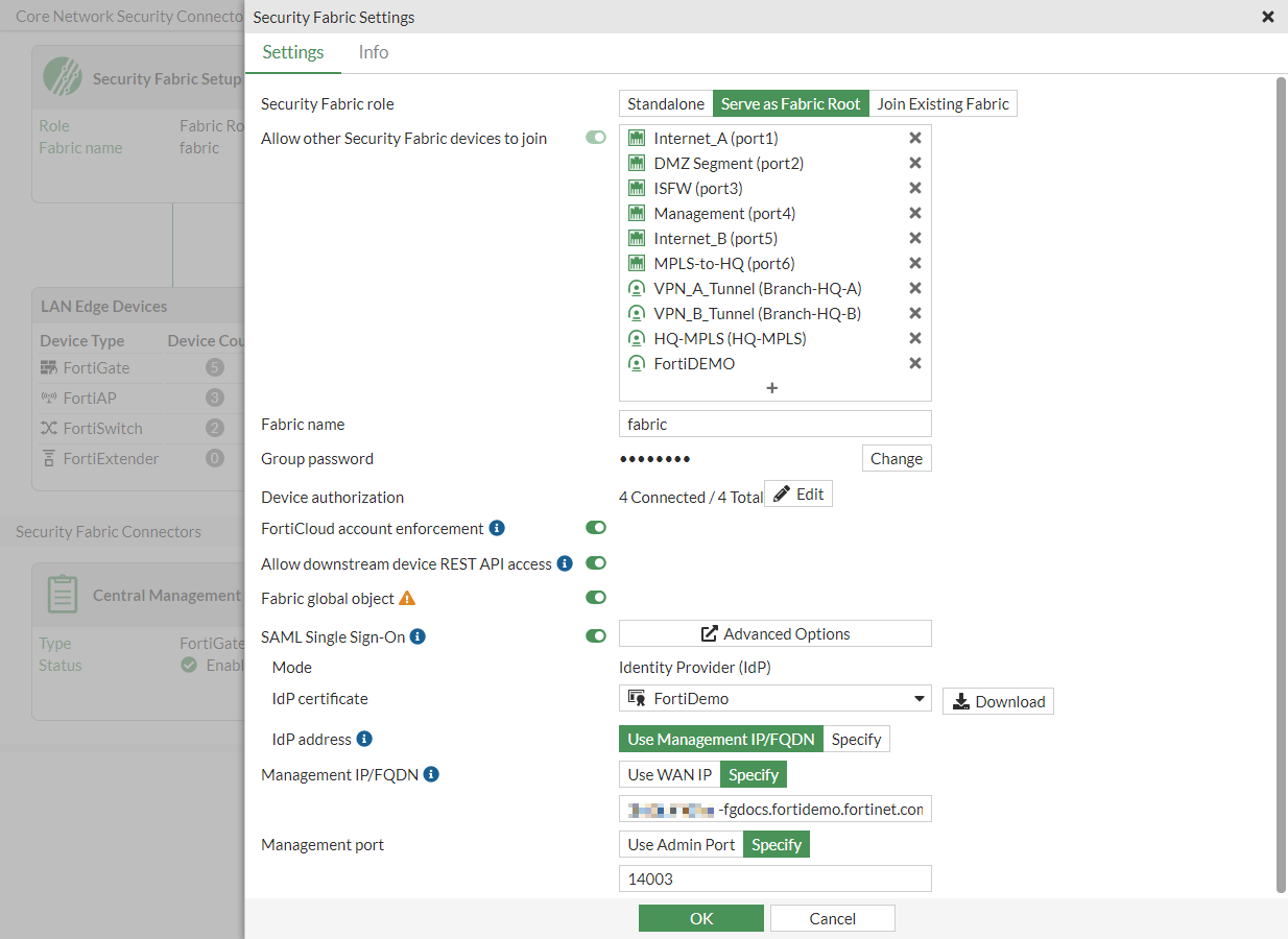 - Ensure Allow other Security Fabric devices to join is enabled.