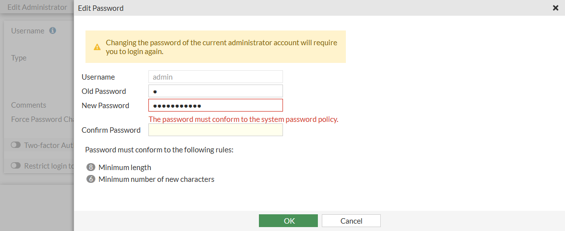 If the password conforms to the password policy, no error message is shown: