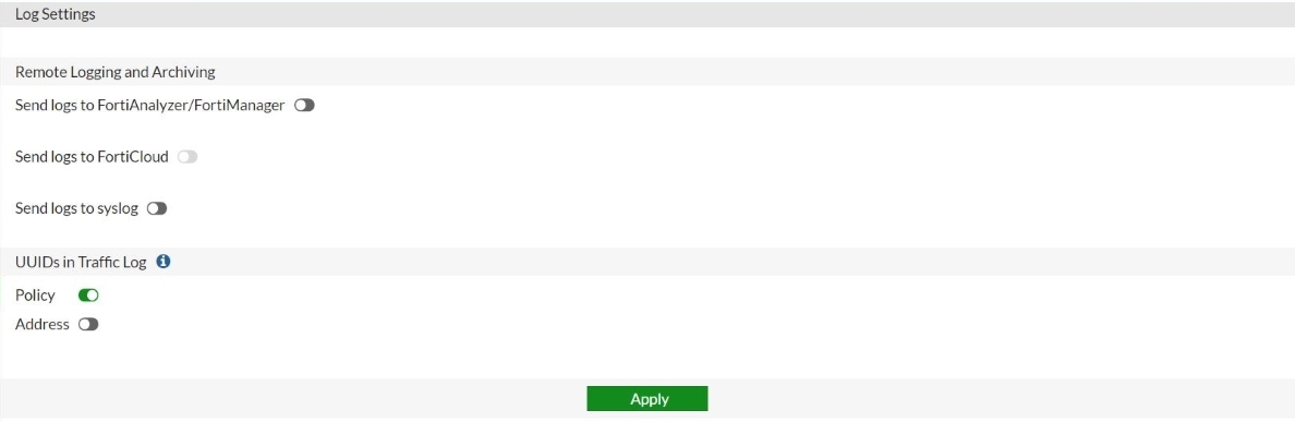 config system global set log-uuid-address enable set log-uuid-policy enable end
