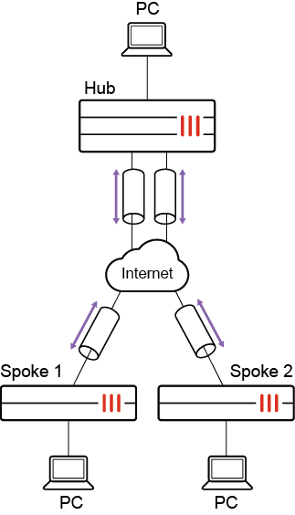When editing a VPN tunnel, the Hub & Spoke Topology section provides access to the easy configuration keys for the spokes, and allows you to add more spokes.
