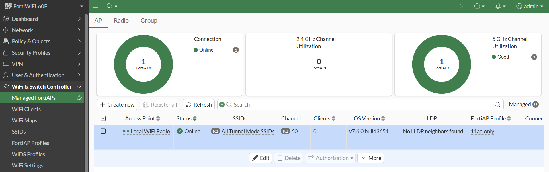 When a FortiWiFi local radio is operating in AP mode, the Local WiFi Radio page under the WiFi & Switch Controller menu is now located in the Managed FortiAPs table.