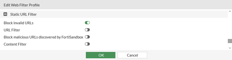 Go to Security Profiles > Web Filter and click Create New, or edit an existing profile.
