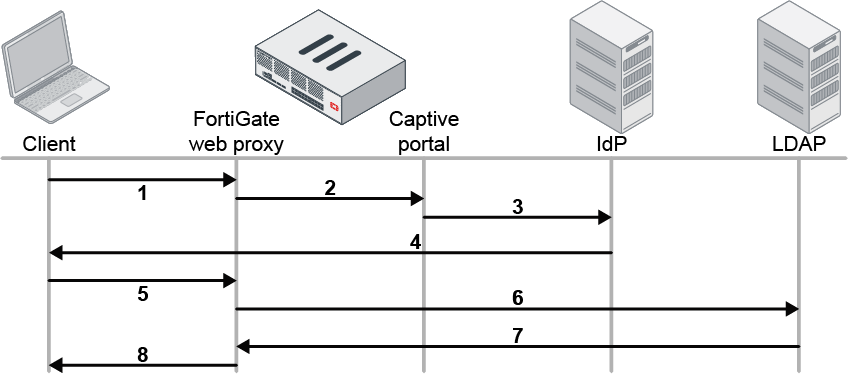 SAML user authentication can be used in explicit web proxies and transparent web proxies with the FortiGate acting as a SAML SP. SAML can be used as an authentication method for an authentication scheme that requires using a captive portal.