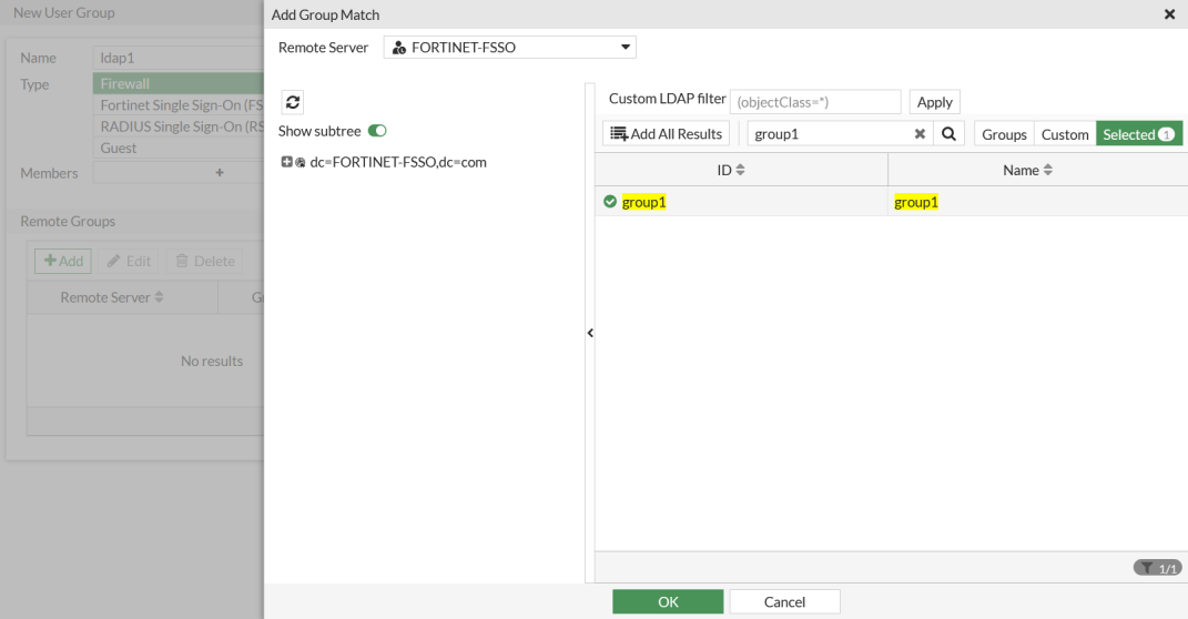 7. Repeat these steps to configure ldap2 with the FORTINET-FSSO group2.