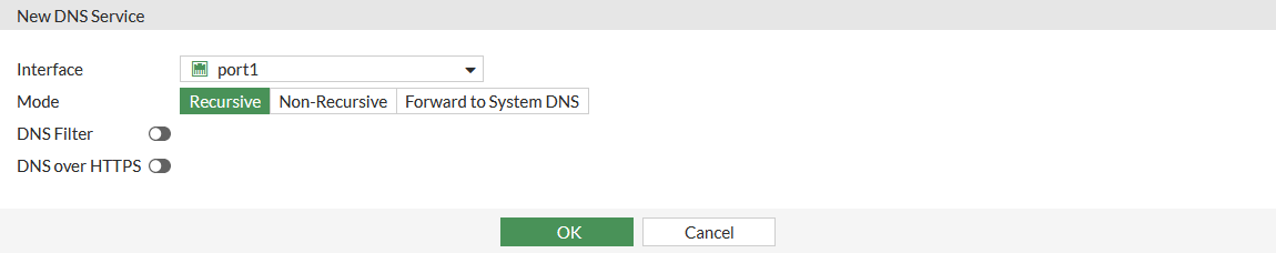 Select the Interface for the DNS server, such as port1.