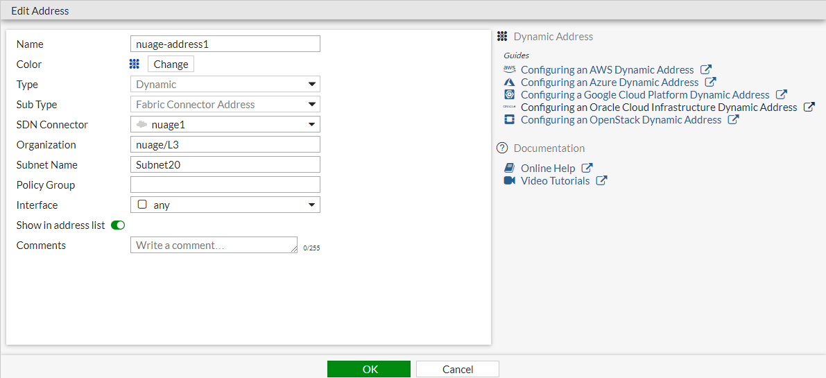 2. Create the dynamic firewall address for the connector: