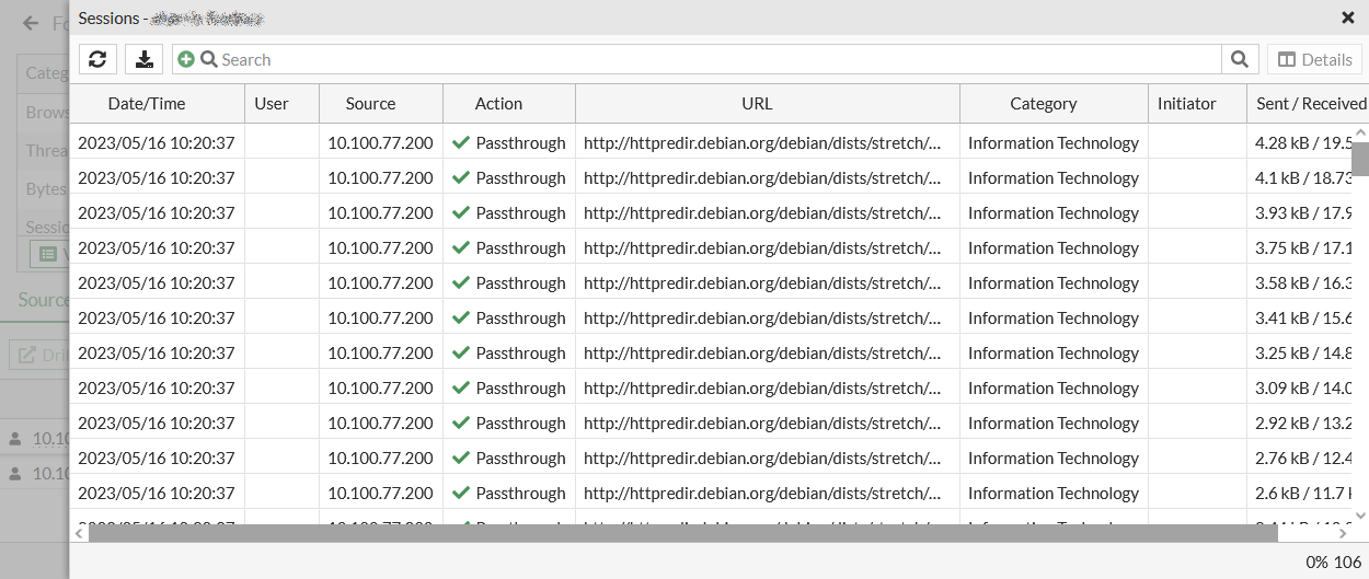 The category name also appears in the Category column in the FortiView Websites monitor and when drilling down in the FortiView Sources monitor.