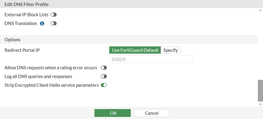 config dnsfilter profile edit "strip-ech-enable" set strip-ech enable next end -