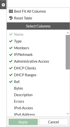 Many GUI pages contain tables of information that can be filtered and customized to display specific information in a specific way. Some tables allow content to be edited directly on that table, or rows to be copied and pasted.