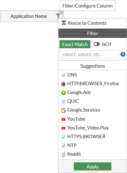 Enter the filter text, or select from the available values.