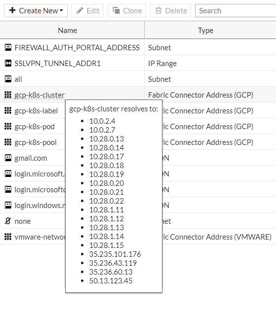 2. Create a dynamic firewall address for the SDN connector with a supported Kubernetes filter: