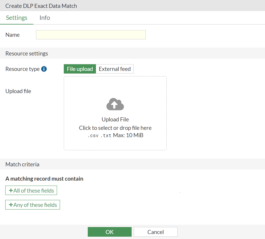 Administrators can define a dataset in a CSV or TXT file on a server, upload file directly on FortiGate or point FortiGate to the external resource. See EDM template for more information.