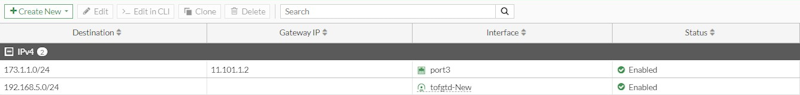 config router static show config router static edit 3 set dst 192.168.5.0 255.255.255.0 set device "tofgtd-New" next end -